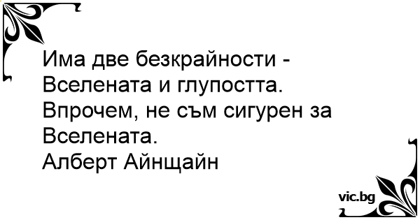 Има две безкрайности - Вселената и глупостта. Впрочем, не съм сигурен за Вселената.