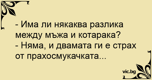 Каква е разликата между котките и мъжете? Никаква, и котката и мъжа се страхуват от прахосмукачката ...