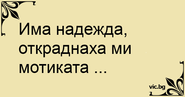 Има надежда, откраднаха ми мотиката ...