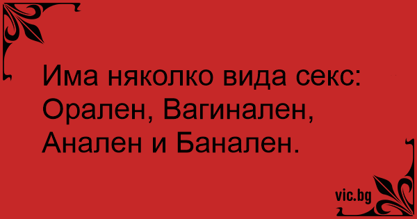 Орален, Вагинален, Aнaлeн и Банален.