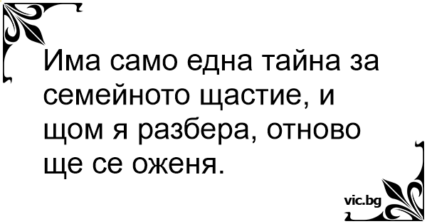 Има само една тайна за семейното щастие, и щом я разбера, отново ще се оженя.