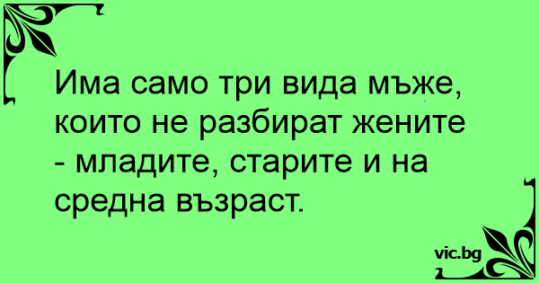 Има само три вида мъже, които не разбират жените - младите, старите и на средна възраст.