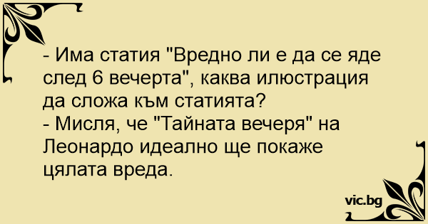 - Има статия "Вредно ли е да се яде след 6 вечерта", каква илюстрация да сложа към статията?