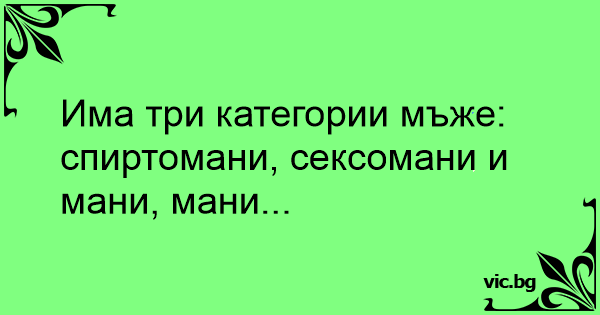 Има три категории мъже: спиртомани, сексомани и мани, мани...