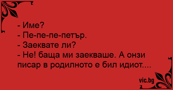 - Не! баща ми заекваше. А онзи писар в родилното е бил идиot....