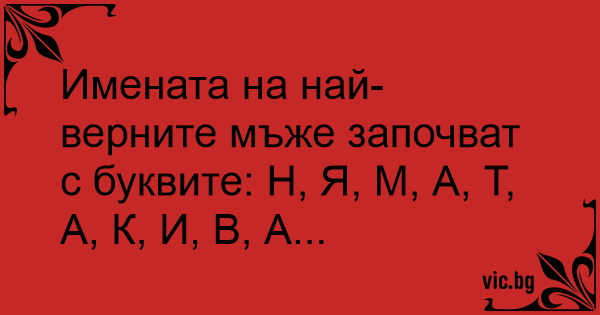 Имената на най-верните мъже започват с буквите: Н, Я, М, А, Т, А, К, И, В, А...