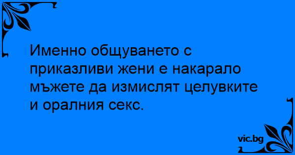 Именно общуването с приказливи жени е накарало мъжете да измислят целувките и оралния cekc.