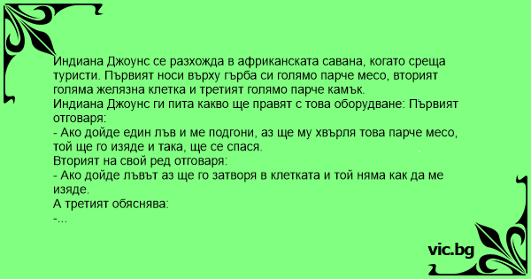 • Вицове от Facebook от нашата страница https://www.facebook.com/www.vic.bg