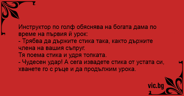 - Трябва да държите стика така, както държите члeнa на вашия съпруг.