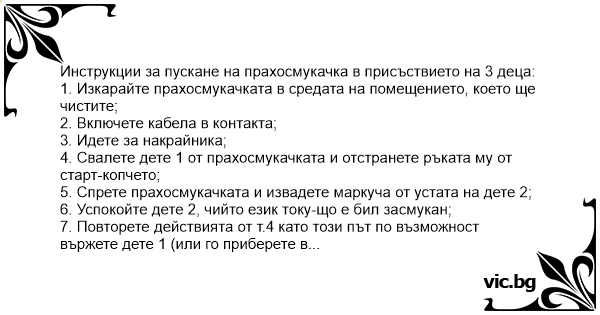 Инструкции за пускане на прахосмукачка в присъствието на 3 деца: