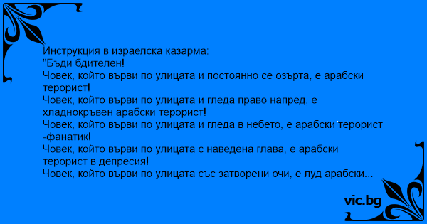 Човек, който върви по улицата и постоянно се озърта, е арабски терорист!