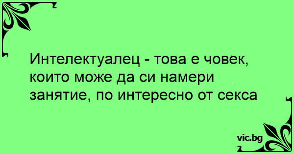 Интелектуалец - това е човек, които може да си намери занятие, по интересно от секса