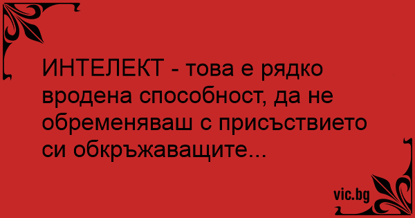 ИНТЕЛЕКТ - това е рядко вродена способност, да не обременяваш с присъствието си обкръжаващите...