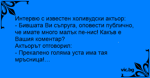 - Бившата Ви съпруга, оповести публично, че имате много малък пенис! Какъв е Вашия коментар?