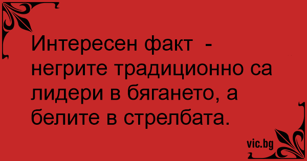 Интересен факт - негрите традиционно са лидери в бягането, а белите в стрелбата.