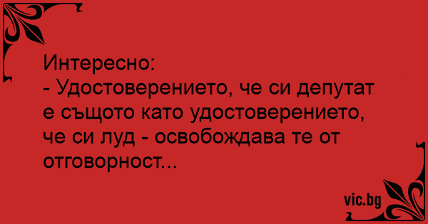 - Удостоверението, че си депутат е същото като удостоверението, че си луд - освобождава те от отговорност...