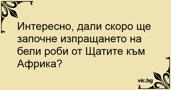 Интересно, дали скоро ще започне изпращането на бели роби от Щатите към Африка?