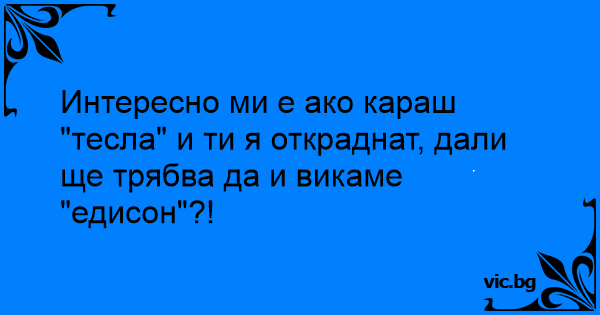 Интересно ми е ако караш "тесла" и ти я откраднат, дали ще трябва да и викаме "едисон"?!