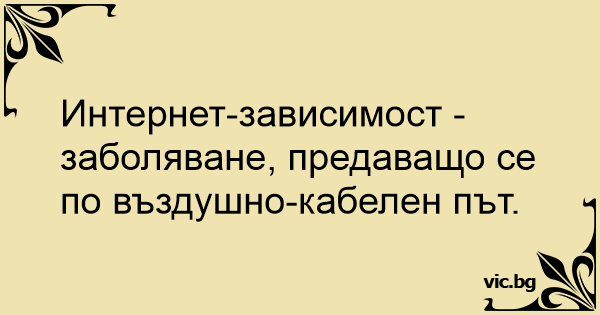Интернет-зависимост - заболяване, предаващо се по въздушно-кабелен път.