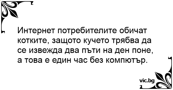 Интернет потребителите обичат котките, защото кучето трябва да се извежда два пъти на ден поне, а това е един час без компютър.