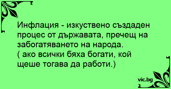 Инфлация - изкуствено създаден процес от държавата, пречещ на забогатяването на народа.