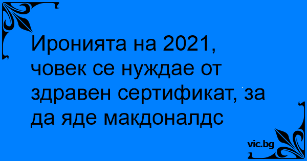 Иронията на 2021, човек се нуждае от здравен сертификат, за да яде макдоналдс
