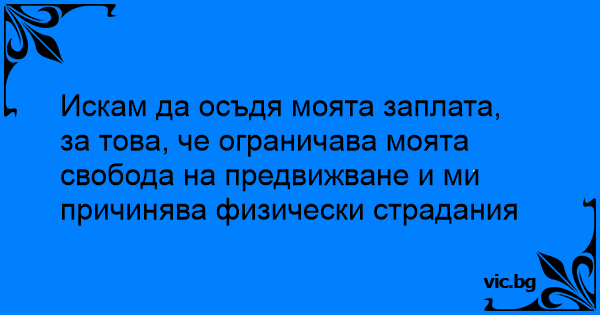 Искам да осъдя моята заплата, за това, че ограничава моята свобода на предвижване и ми причинява физически страдания