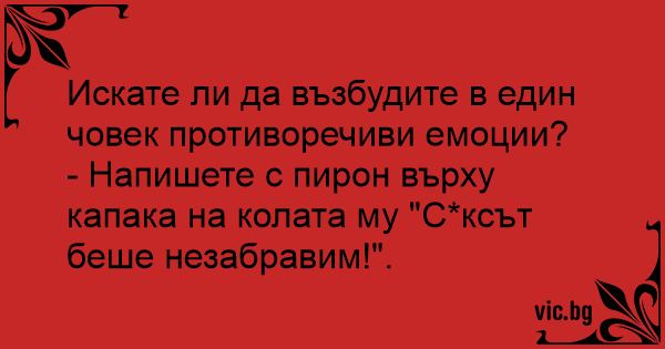 - Напишете с пирон върху капака на колата му "cekcъt беше незабравим!".