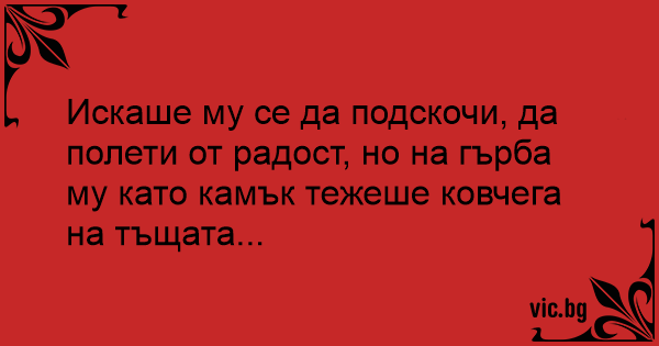 Искаше му се да подскочи, да полети от радост, но на гърба му като камък тежеше ковчега на тъщата...