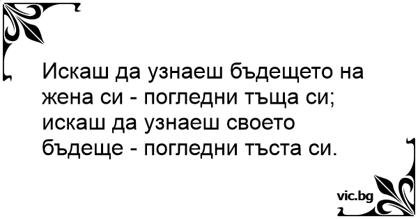 Искаш да узнаеш бъдещето на жена си - погледни тъща си; искаш да узнаеш своето бъдеще - погледни тъста си.