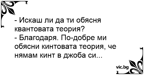 - Благодаря. По-добре ми обясни кинтовата теория, че нямам кинт в джоба си...