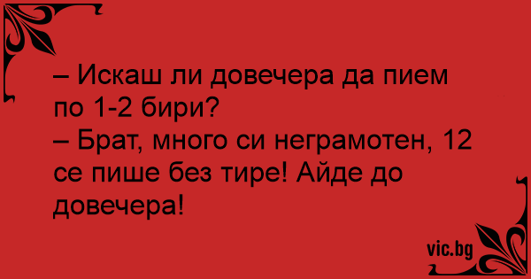 – Брат, много си неграмотен, 12 се пише без тире! Айде до довечера!