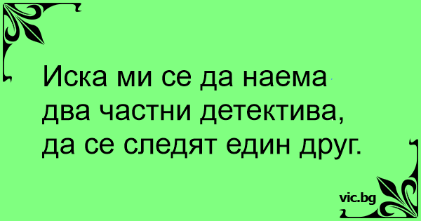 Иска ми се да наема два частни детектива, да се следят един друг.