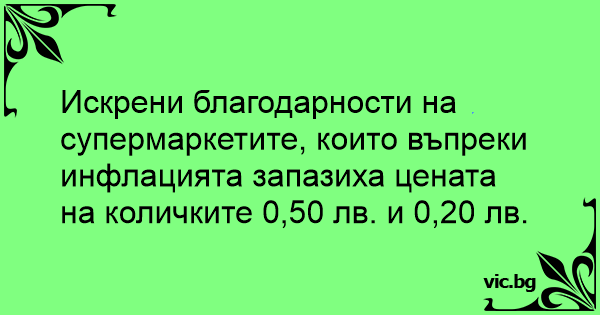 Искрени благодарности на супермаркетите, които въпреки инфлацията запазиха цената на количките 0,50 лв. и 0,20 лв.