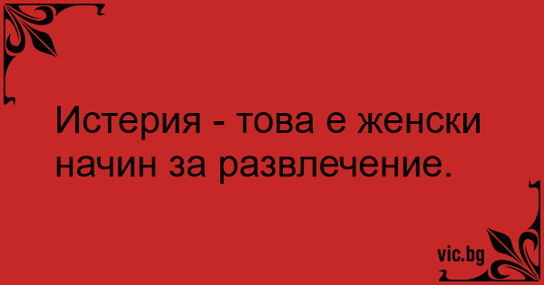 Истерия - това е женски начин за развлечение.