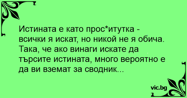 Истината е като Пpoctиtуtka - всички я искат, но никой не я обича.