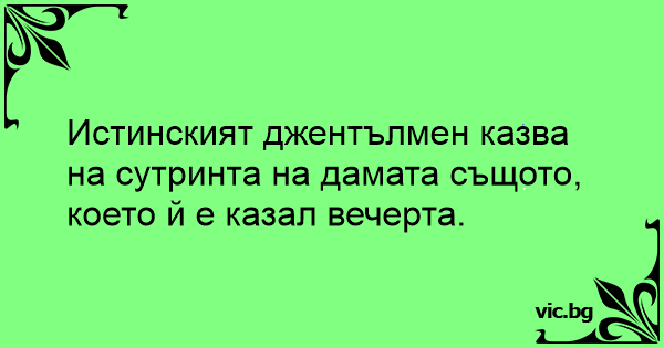 Истинският джентълмен казва на сутринта на дамата същото, което й е казал вечерта.