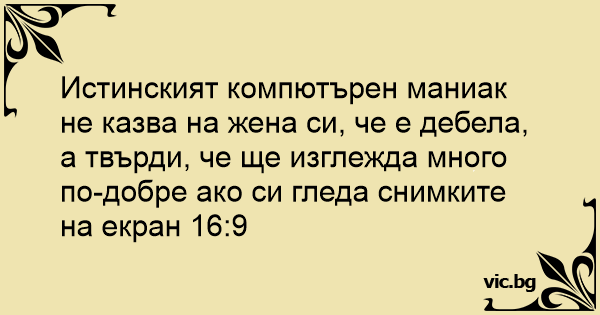 Истинският компютърен маниак не казва на жена си, че е дебела, а твърди, че ще изглежда много по-добре ако си гледа снимките на екран 16:9