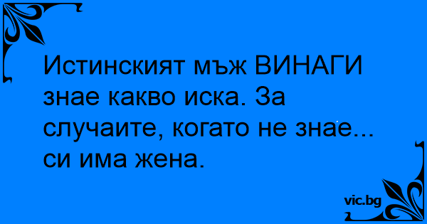 Истинският мъж ВИНАГИ знае какво иска. За случаите, когато не знае... си има жена.