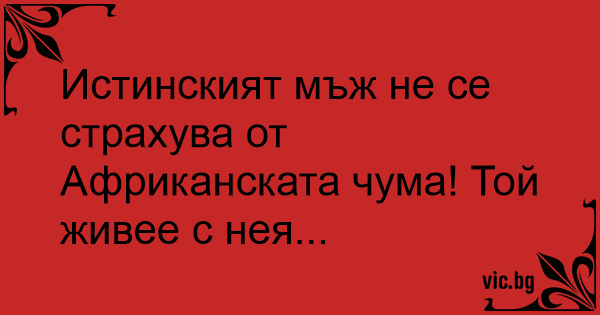Истинският мъж не се страхува от Африканската чума! Той живее с нея...