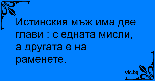 Истинския мъж има две глави : с едната мисли, а другата е на раменете.