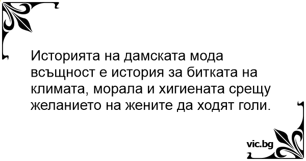 Историята на дамската мода всъщност е история за битката на климата, морала и хигиената срещу желанието на жените да ходят голи.<br />