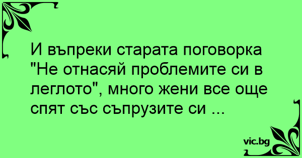 И въпреки старата поговорка "Не отнасяй проблемите си в леглото", много жени все още спят със съпрузите си ...