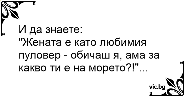 "Жената е като любимия пуловер - обичаш я, ама за какво ти е на морето?!"...