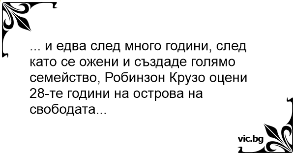 ... и едва след много години, след като се ожени и създаде голямо семейство, Робинзон Крузо оцени 28-те години на острова на свободата...