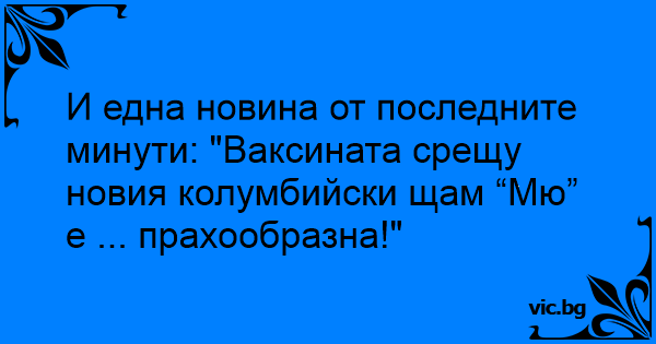 И една новина от последните минути: "Ваксината срещу новия колумбийски щам “Мю” е ... прахообразна!"