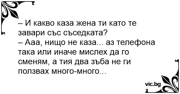 – И какво каза жена ти като те завари със съседката?