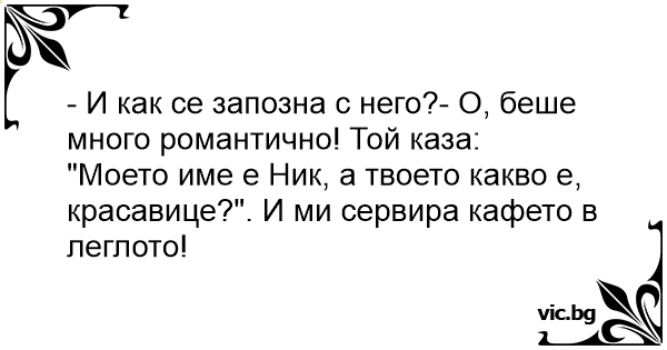 - И как се запозна с него?- О, беше много романтично! Той каза: