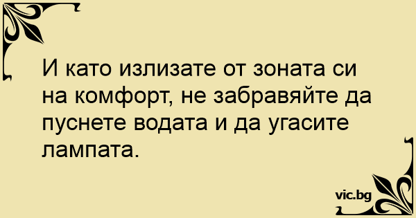 И като излизате от зоната си на комфорт, не забравяйте да пуснете водата и да угасите лампата.