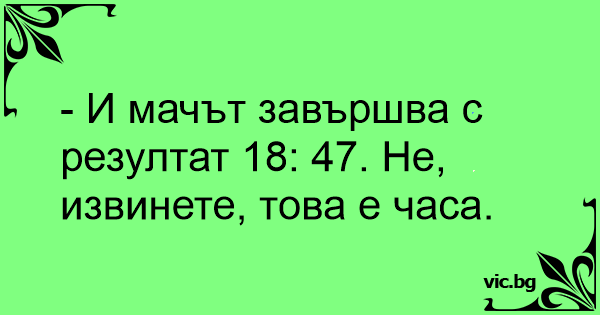 - И мачът завършва с резултат 18: 47. Не, извинете, това е часа.